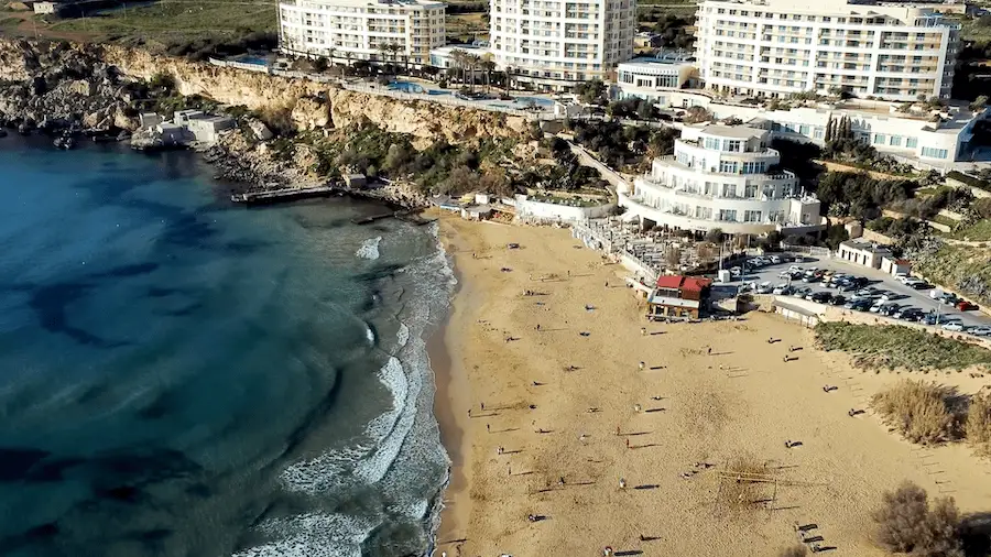 È difficile non notare la spiaggia di St George’s Bay, o più comunemente, la spiaggia di Saint Julian’s. La spiaggia si trova ai piedi del quartiere più vivace e turbolento di Malta: Paceville.
